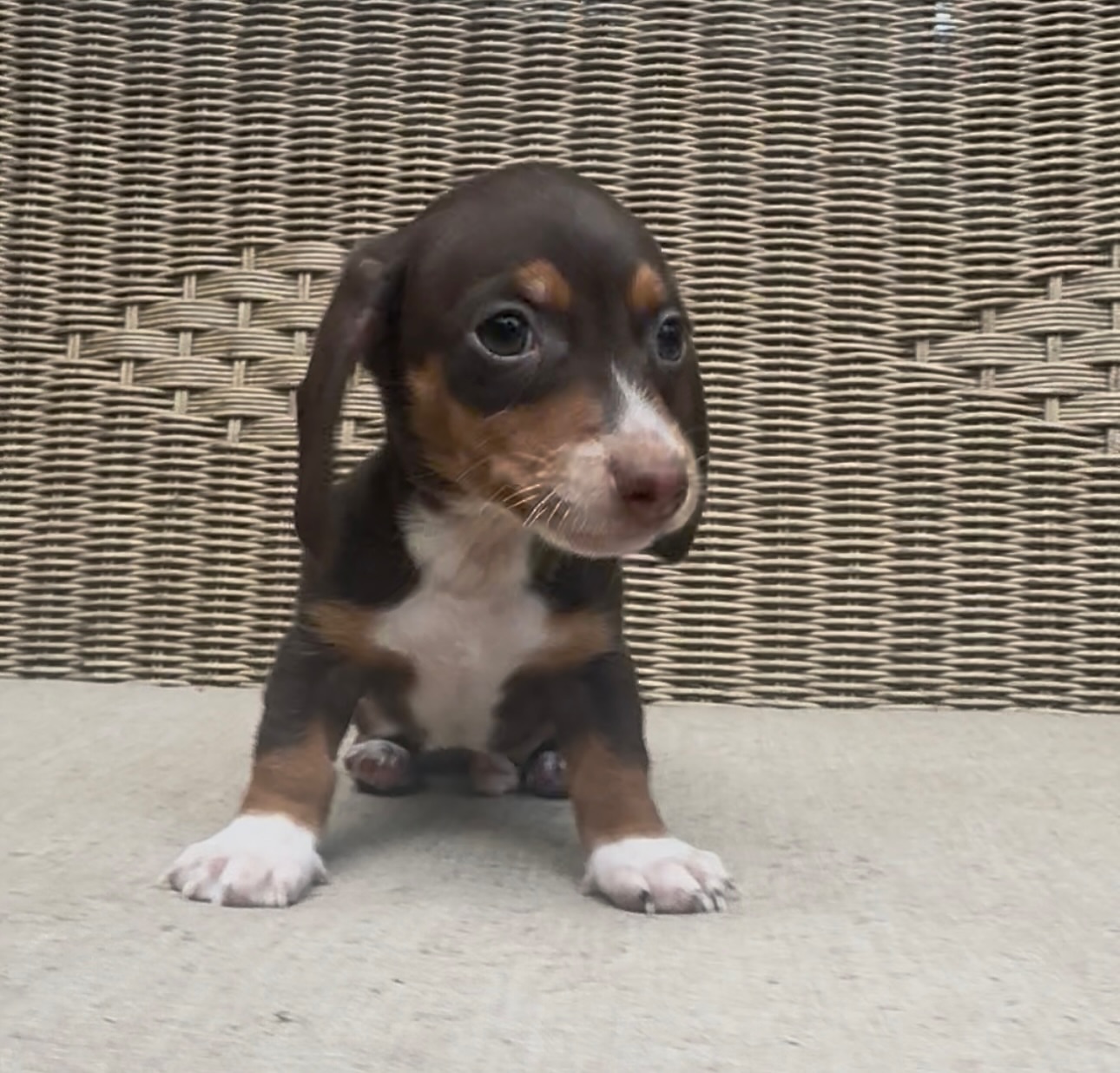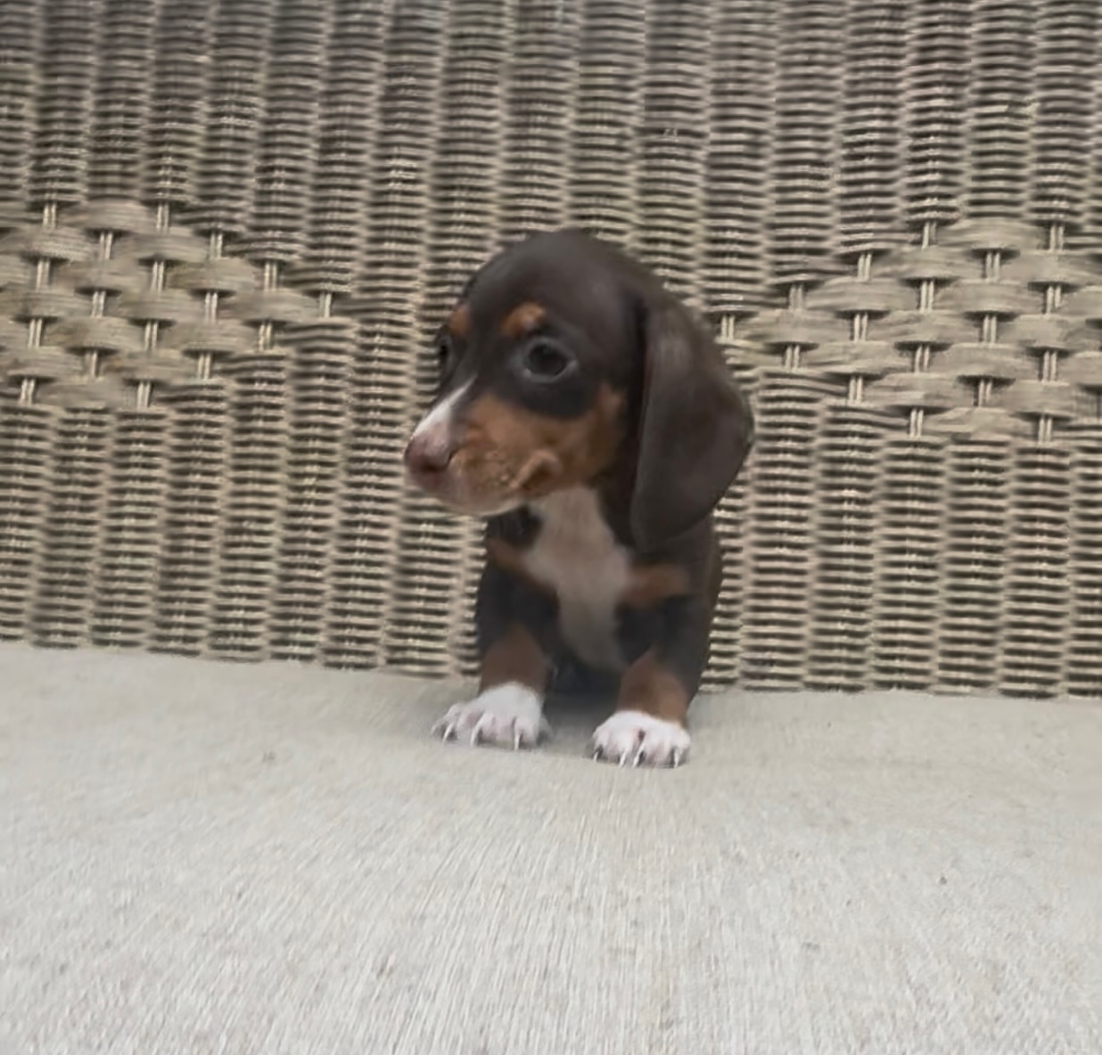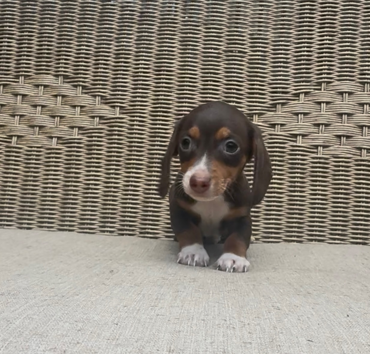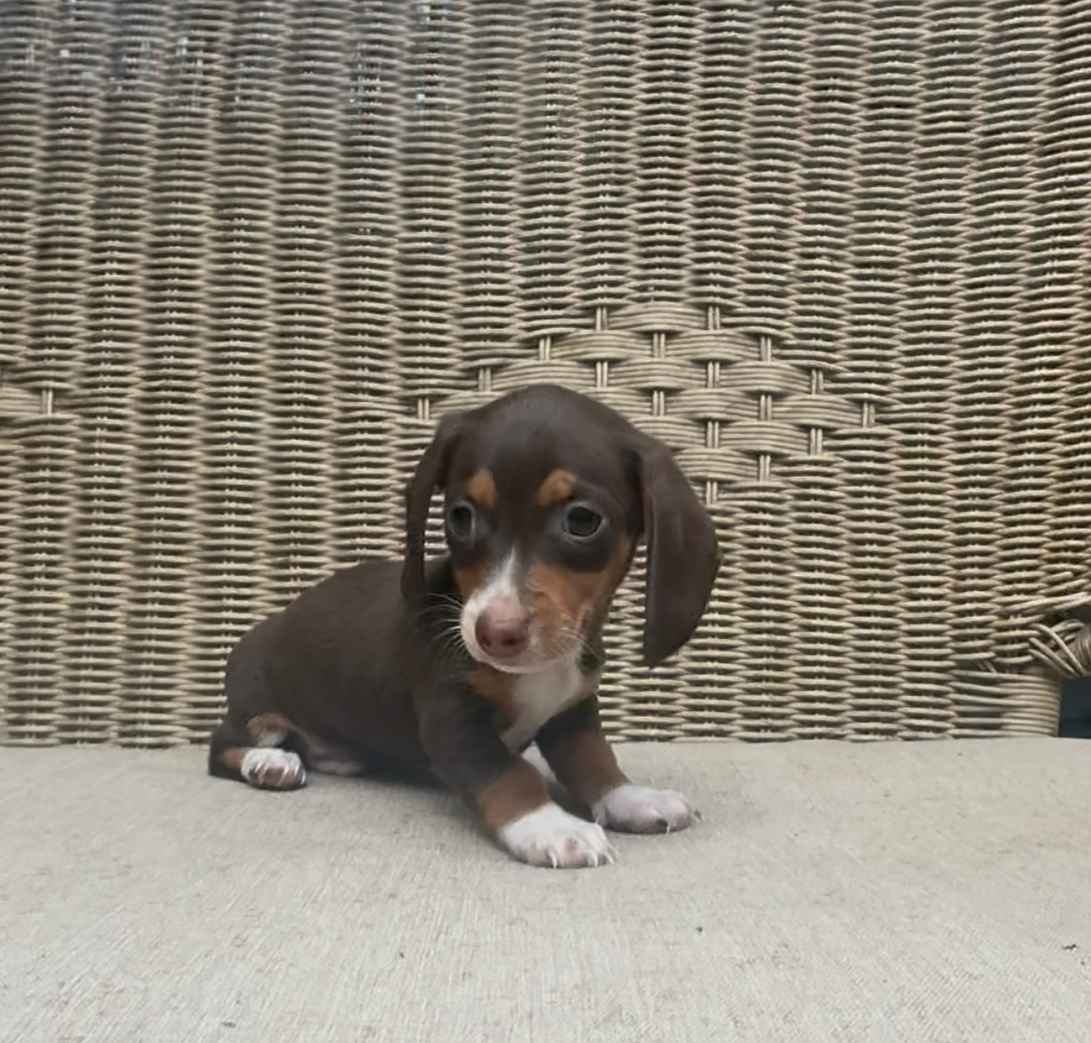 Attention for those looking for a true mini. This little chocolate & tan shorthaired boy is as tiny as he is precious A pocket-sized bundle of sweetness ready to melt hearts everywhere.